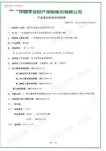 嚴格按照ISO9001:2008版標準作業流程作業,嚴格管控生產的每一個細節來持續穩定提高產品品質。全部產品均獲得公安部認證,產品購買產品500萬責任傷害。